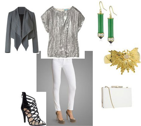 Hoặc bạn cũng có thể kết hợp jeans trắng với những chiếc áo đơn giản màu nhũ bạc.