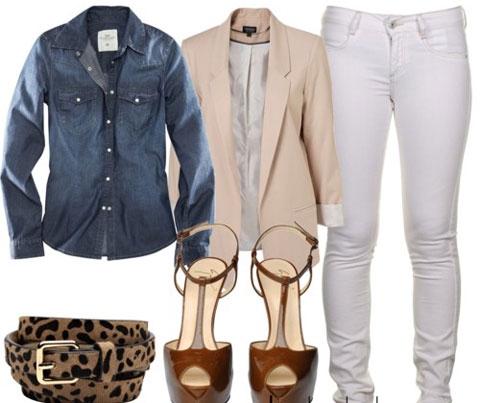 Để tạo một phong cách quyến rũ đầy cảm hứng với quần jeans trắng? Hãy thử mặc một chiếc quần jeans trắng với một áo khoác bò hay áo khoác dáng dài.