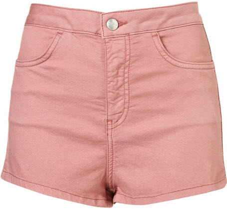 Kiểu quần short denim màu hoa hồng được thiết kế thắt eo cũng được các bạn trẻ rất yêu thích trong mùa hè này. Bạn có thể mặc short denim màu hồng với áo thun không cổ buộc phần eo, cùng với một đôi giày trắng thể thao.