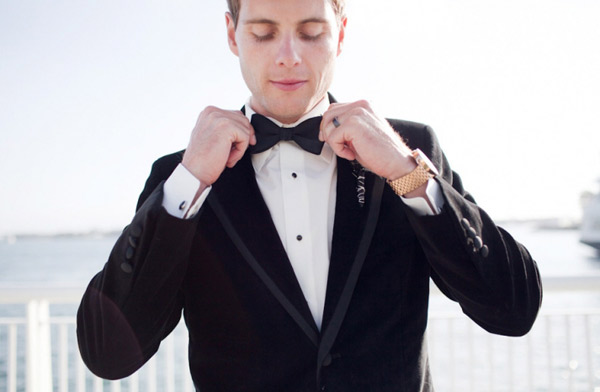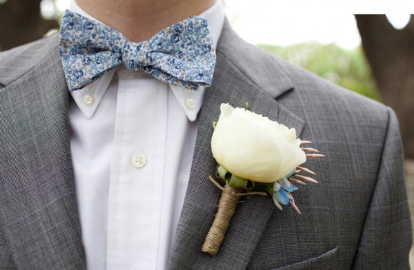 Kết hợp cùng màu ghi xám, các chú rể vẫn yêu thích áo sơ mi màu trắng vì nó phù hợp nhất với không khí trang trọng của đám cưới. Chọn cravat sáng màu như xanh tím than, xanh da trời hoặc vàng nâu khi kết hợp với áo vest xám và sơ mi trắng. Những chú rể thích sự trẻ trung nên chọn nơ bướm, vừa thoải mái, vừa năng động.