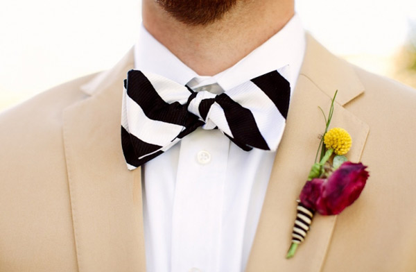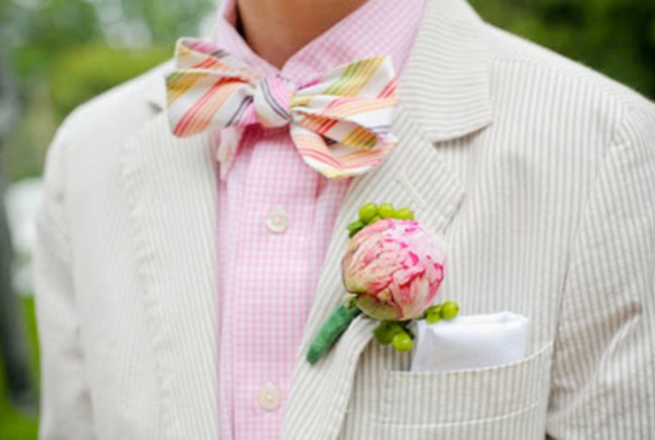 Bản thân màu sắc tươi sáng của áo vest đã khiến chú rể rất trẻ trung nên kết hợp với nơ bướm là phù hợp nhất. Những tân lang có vóc dáng mảnh khảnh, hơi gầy nên chọn màu sáng như vàng kem, trắng xám... để che giấu bớt nhược điểm của mình. Chọn áo sơ mi tươi trẻ như trắng, hồng nhạt, vàng nhạt... để kết hợp cùng vest sáng màu.