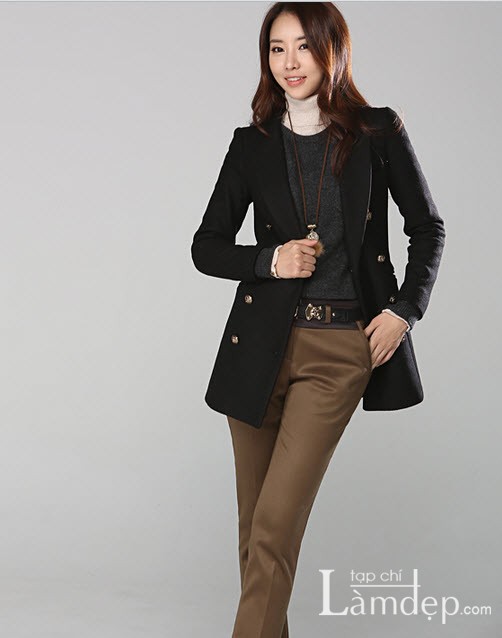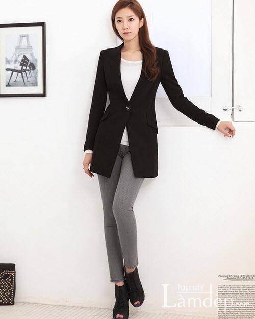 Những chiếc áo vest hay blazer dáng dài với các gam màu đen, ghi, xám... là lựa chọn tốt nhất cho bạn gái công sở mùa đông này đấy.
