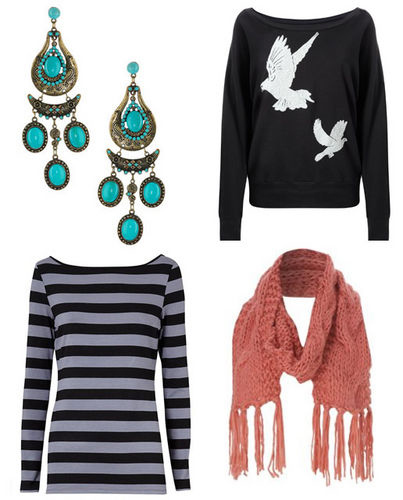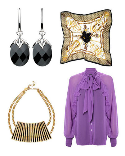 Đôi hoa tai với chiều rộng ở phần dưới sẽ làm cân bằng vầng trán rộng. Bạn gái có thể chọn cho mình sợi dây chuyền phong cách cổ điển, quần dài, yếm hoặc cổ áo có độ cao vừa phải làm tăng vẻ đẹp dịu dàng, nữ tính. Áo cổ cánh dơi, thác nước, sơ mi cổ điển kết hợp với chiếc khăn choàng cổ hoa văn cho bạn vẻ đẹp gợi cảm và nổi bật.
