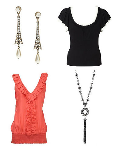 Đôi hoa tai mỏng và dài sẽ phù hợp với bạn. Tạo hiệu ứng thu nhỏ gương mặt cùng với mặt dây chuyền và vòng cổ dài. Áo cổ chữ V, cổ rộng khoét sâu tới ngực sẽ giúp kéo cao chiếc cổ hơn. Với những bạn gái có vóc dáng nhỏ nhắn, dạng trang phục này còn tạo ảo giác về chiều cao.