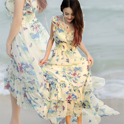 Váy đi biển thường được may với chất liệu tương đối nhẹ và mềm mại để tạo độ bay bổng và lãng mạn.