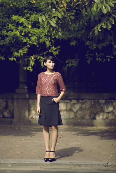 | Chất liệu ren thường mang tới sự mềm mại, vẻ đẹp nữ tính và dành cho người mặc. Áo ren và chân váy xòe, có chiều dài tới gối, chắc chắn là một lựa chọn thông minh của các chị em có vóc dáng nhỏ bé, giúp họ trông ’có da có thịt’ và đáng yêu hơn. |