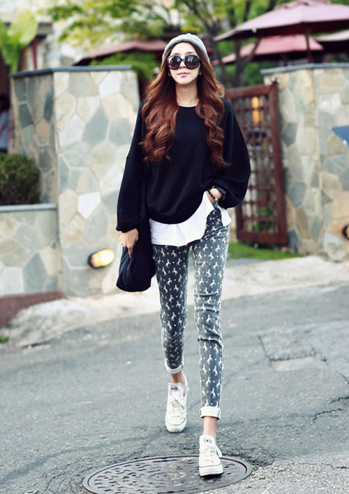 Dáng quần in họa tiết như kẻ sọc, hình thú cưng hay những đường loang phá cách... là bộ cánh để bạn thật cá tính mà vẫn không mất đi nét mềm mại, nữ tính đáng yêu.