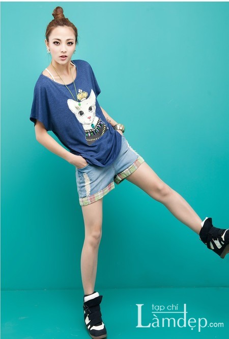 Diện trang phục với chất liệu thun, cotton… xuống phốgiúp phái đẹp năng động, khỏe khoắn trong khí trời oi bức.