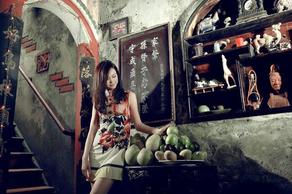Diện váy oversized nền trắng, in hoa văn và đính đá, người đẹp trông thật nữ tính nhưng vẫn rất gợi cảm. Chiếc váy này giúp che giấu vòng hai kém thon gọn nhưng lại để lộ đôi tay và cặp chân. Vì thế, nếu bắp tay, chân to, thô hoặc gầy khẳng khiu, chân cong... bạn nên tránh diện.