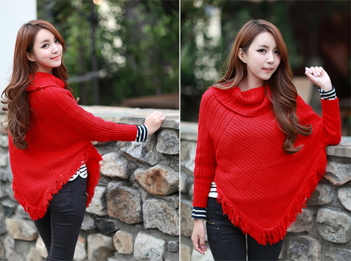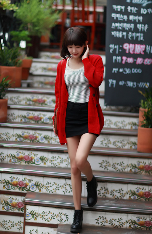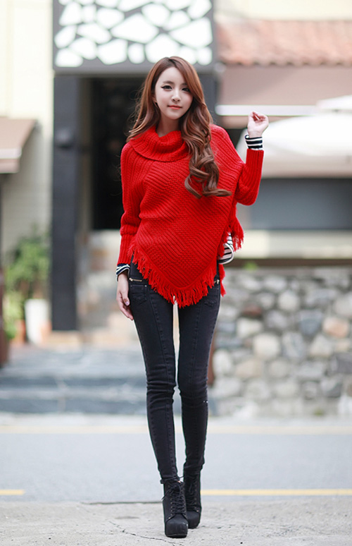 Nếu chọn áo len hay áo cardigan màu đỏ nóng bỏng, chọn màu quần đi cùng là gam màu đen sẽ là sự phối hợp ăn ý cho toàn bộ trang phục.