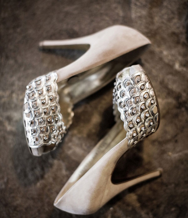 Giày nude điểm thêm họa tiết lấp lánh sẽ khiến cô dâu nổi bật trong đám cưới.