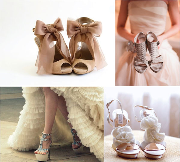 | Kiểu giày nude điệu đà nên kết hợp với váy cưới ngắn. |