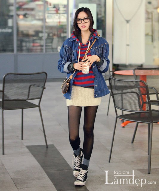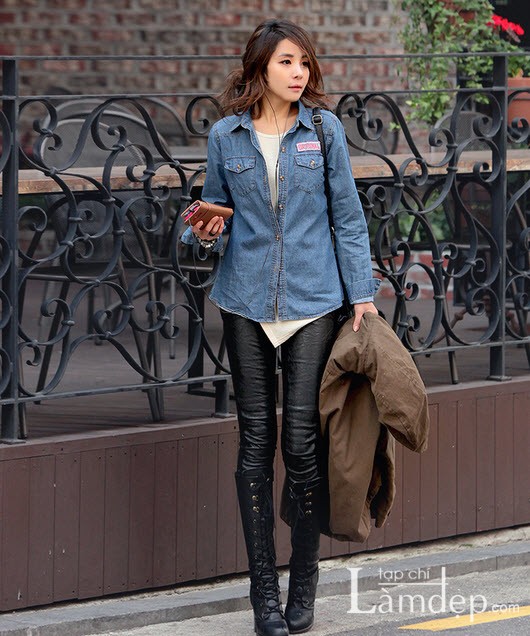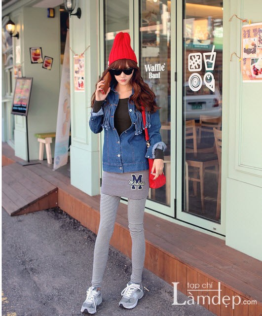 Nếu muốn mix đồ theo phong cách khỏe khắn và năng động, hãy thử kết hợp áo khoác denim với đồ kẻ. Ngoài ra bạn cũng có thể chọn cách kết hợp cổ điển và dễ dàng nhất, đó là kết hợp áo denim với quần short, quần skinny hoặc legging nhé. Đi cùng với boot là quá chuẩn cho thời tiết se lạnh rồi.