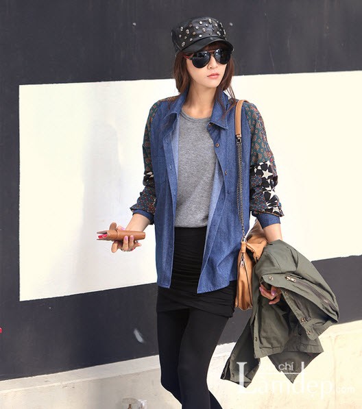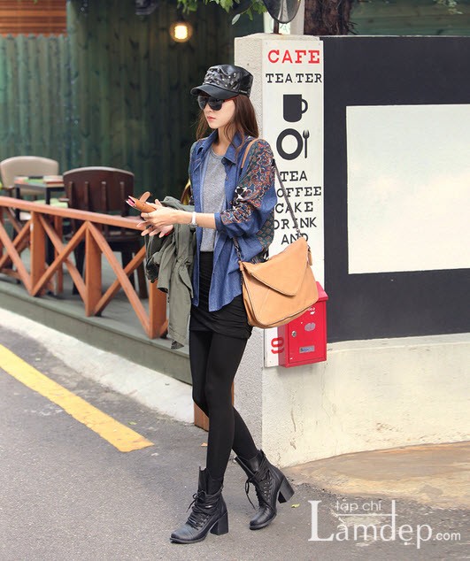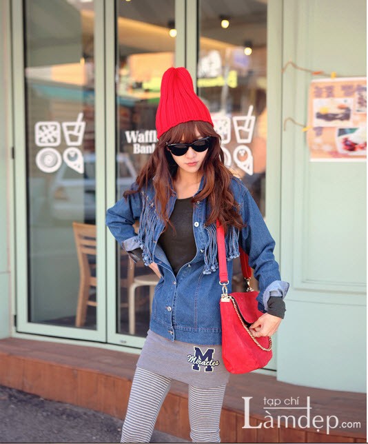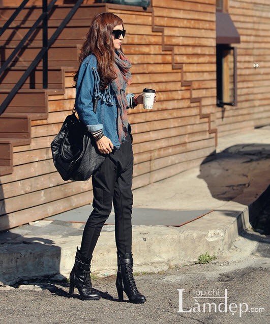 Một tip nhỏ cho việc mix đồ với áo khoác denim đó là bạn nên chọn phụ kiện như giày dép và túi xách đơn giản hoặc có thể bụi bặm một chút để phù hợp với áo nhé.