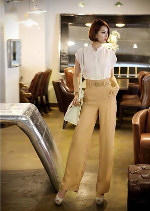 Thanh lịch và cổ điển là những gì mà chiếc quần ống rộng mang đến cho các cô nàng công sở.