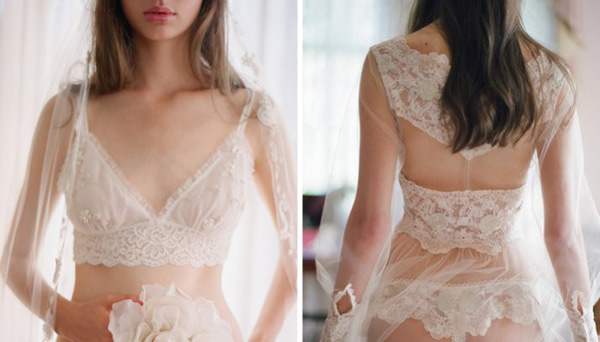 | Cô dâu có thể chọn nội y may hoàn toàn từ ren hoặc kết hợp giữa ren và voan. |