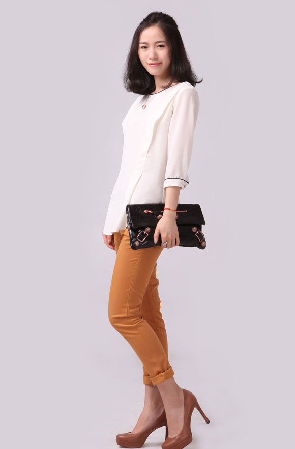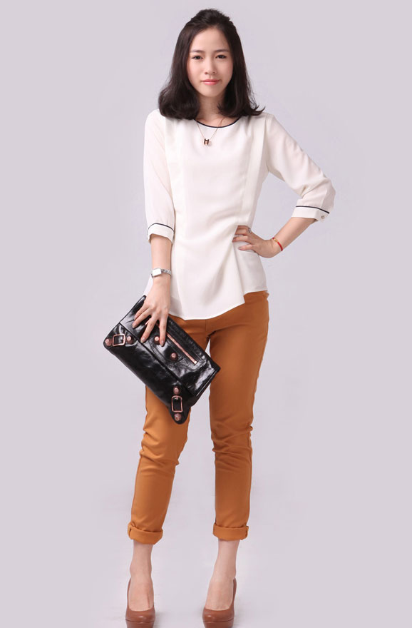 Thay vì chiếc quần dài khiến bạn cảm thấy không tự tin khi đi giày thấp, một gợi ý nho nhỏ cho bạn đó là hãy gập gấu quần lên chừng 5 đến 7 cm. Mỗi ống gập khoảng 3 cm, khi nào qua mắt cá chân là vừa đẹp. Kiểu gập gấu quần kaki này tạo một chút phá cách cho bạn không chỉ cho trang phục đi chơi mà ngay cả trang phục đi làm cũng có thể thay đổi tạo style mới lạ.