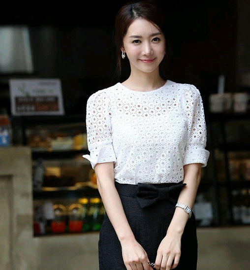 Thường màu sắc của ren công sở thiên về gam sáng thay vì những màu sắc quá gợi cảm như đỏ, đen. Bạn có thể diện nguyên một chiếc áo có chất liệu ren hoàn toàn hoặc kết hợp với các chất liệu khác để tạo nên sự đa dạng cho phong cách.