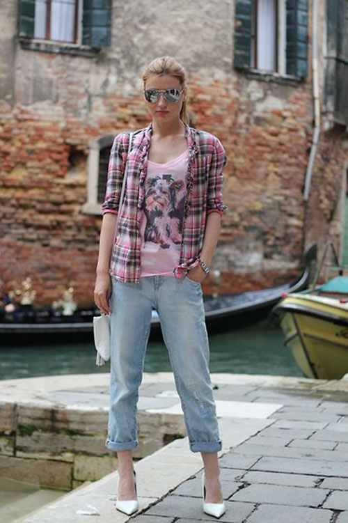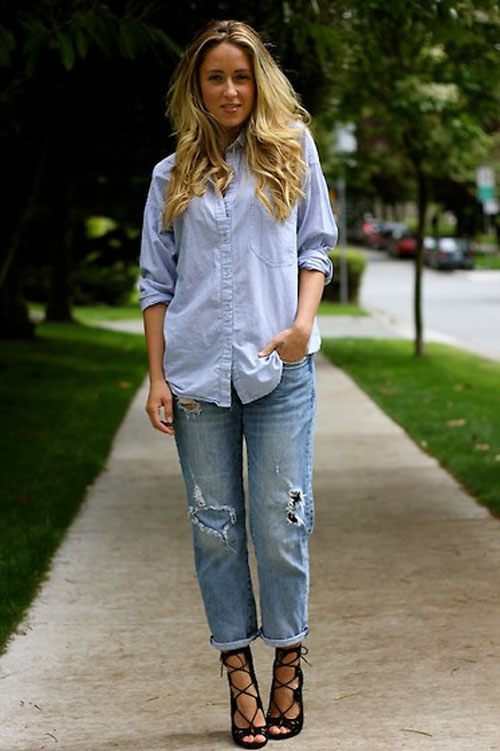 hoặc sơmi dáng suông cũng là lựa chọn không tồi khi mix cùng jean boyfriend. Nếu bạn có có chiều cao ổn, bạn có thể mặc như thế này để cảm nhận được sự thoải mái. Còn nếu bạn không được cao thì nên chọn những chiếc áo sơ mi hoặc pull bó sát phần trên và kết hợp với giày cao gót