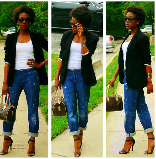 Với jean boyfriend, bạn có thể mix với đủ kiểu áo. Như croptop và blazer...