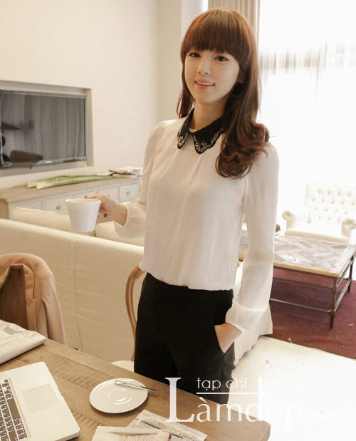 Sơ mi đông năm nay có một chút cách điệu cho thêm phần trẻ trung và mới mẻ. Có thể ở phần cổ áo, tay áo như may bèo dúm hay 1 chiếc cổ peter pan rời đính đá lấp lánh sẽ là điểm nhấn giúp chiếc áo sơ mi không còn đơn điệu.