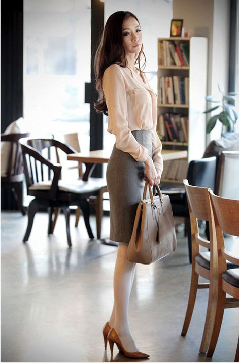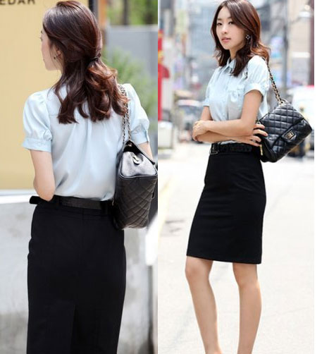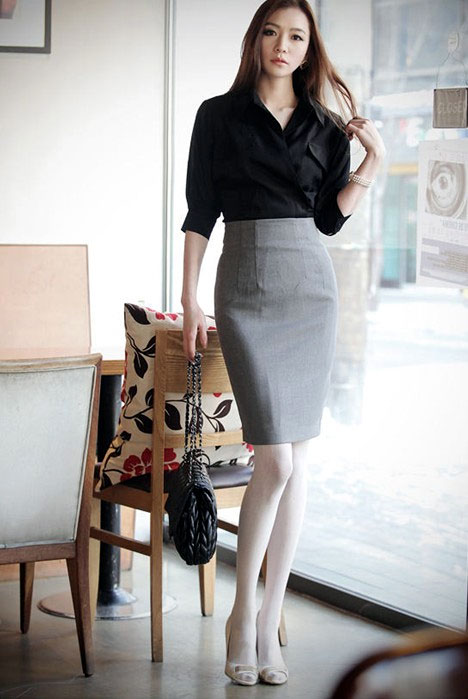| Sơ mi phối với chân váy bút chì mang lại vẻ thanh lịch, nghiêm túc rất phù hợp nơi công sở |