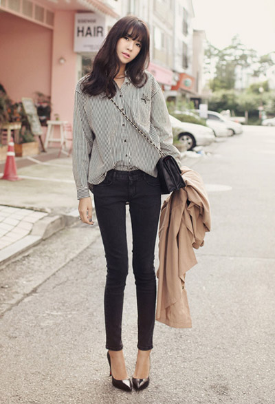 Đây là kiểu kết hợp phổ biến nhất bởi với vẻ tinh nghịch đặc trưng, những chiếc áo rộng cực kỳ "ăn ý" với quần jeans khỏe khoắn. Khi diện kiểu này, bạn hãy chọn quần dáng skinny (ôm sát) để trông cơ thể gọn gàng và cân đối.