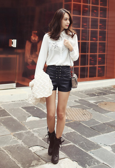 Những bạn gái may mắn sở hữu đôi chân thon nuột chắc chắn không thể bỏ qua cách mix này. Bạn có thể sơ vin gọn gàng hay nhét vạt áo một cách bụi bặm, hoặc cài lệch cúc bên ngoài áo thun và bổ sung một chiếc mũ đáng yêu để hoàn thiện vẻ ngoài.
