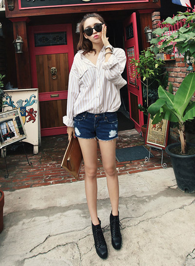 Sơ mi thụng mặc cùng quần shorts