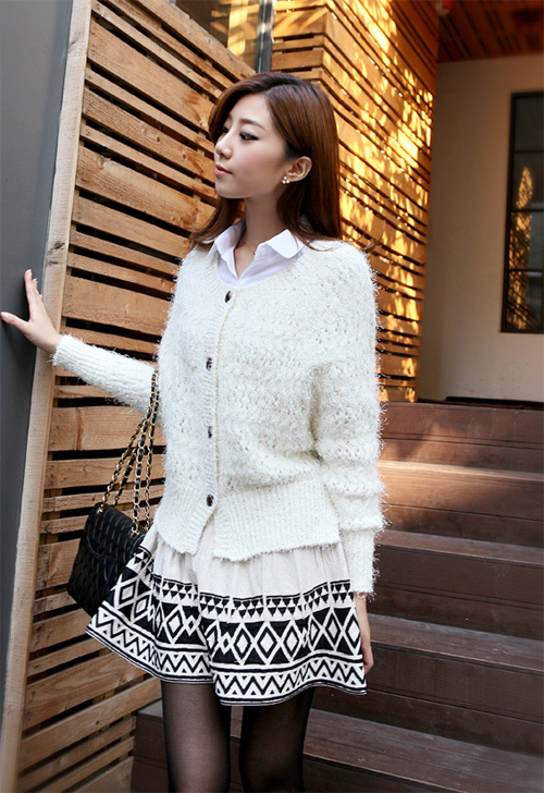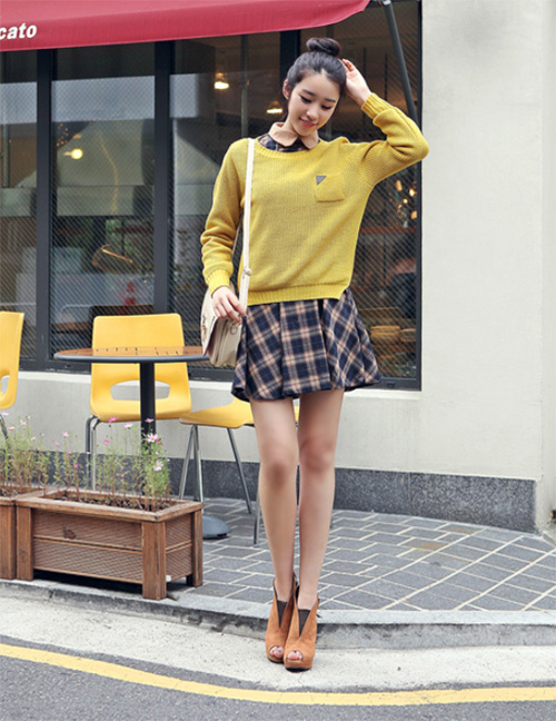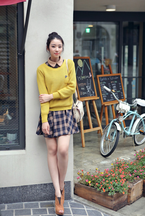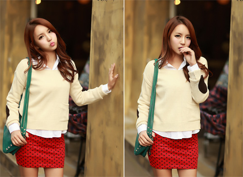 Áo sơ mi và áo len mix cùng chân váy cho bạn nét nữ tính cực dễ thương và xiêu lòng phái đẹp.