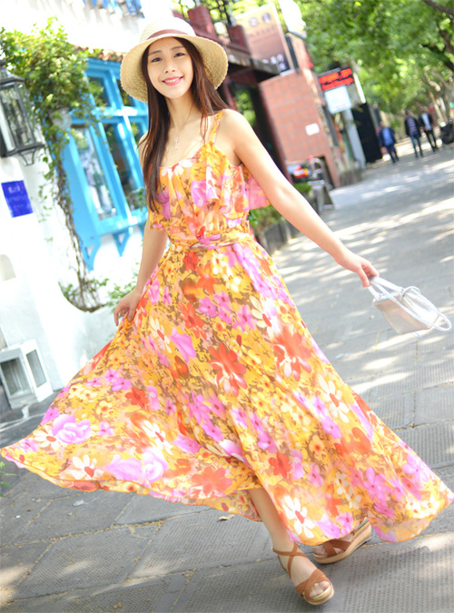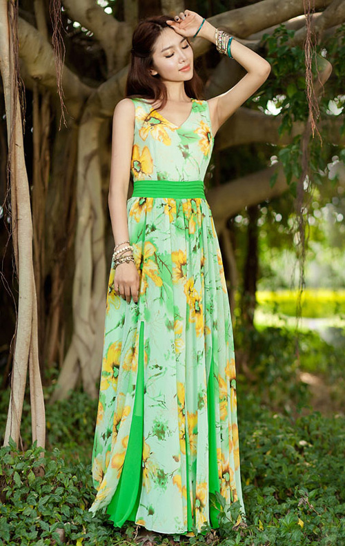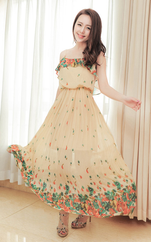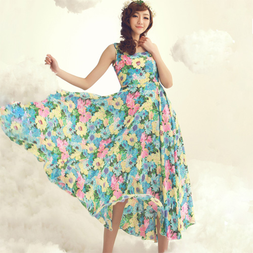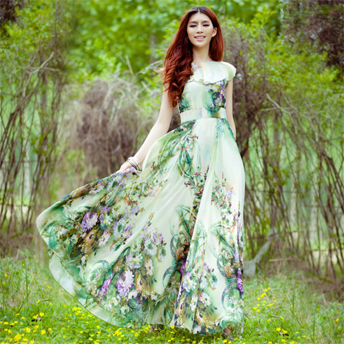 Có thể nói mùa hè là mùa thời điểm lên ngôi của dáng váy hoa trẻ trung, tươi mới và đầy sức sống. Họa tiết hoa bắt mắt được thiết kế trên dáng váy dài thướt tha càng làm bạn gái thêm nổi bật và đáng yêu vô cùng.
