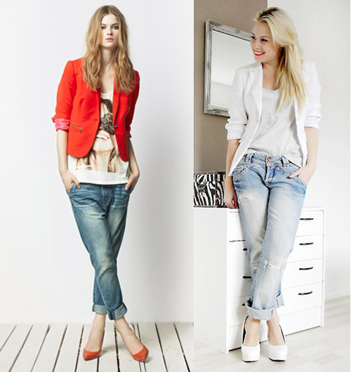 Hoặc pha thêm nét nữ tính bằng chiếc blazer (áo vest mềm mại) sành điệu và giày cao gót.