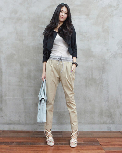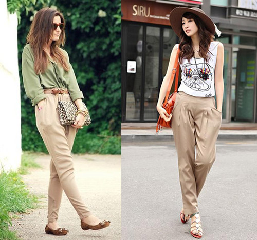 Những chiếc quần baggy (đũng thấp, đùi rộng, phần ống dưới ôm) cá tính đã không còn xa lạ với giới trẻ. Thời gian gần đây, chúng ngày càng phổ biến với nhiều kiểu dáng và chất liệu khác nhau như jeans, kaki, lanh..., mang đến cho bạn gái nhiều sự lựa chọn để mix đa dạng theo các phong cách khác nhau. Trông bạn sẽ rất khỏe khoắn khi diện quần baggy jeans bụi bặm, nhưng lại trở nên thanh lịch, thời thượng nếu chọn chất liệu kaki cùng những đường xếp ly hay xắn gấu...