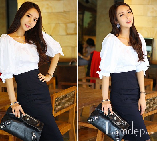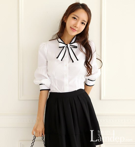 Cách phối đồ cổ điển là quần âu màu đen với sơ mi trắng.