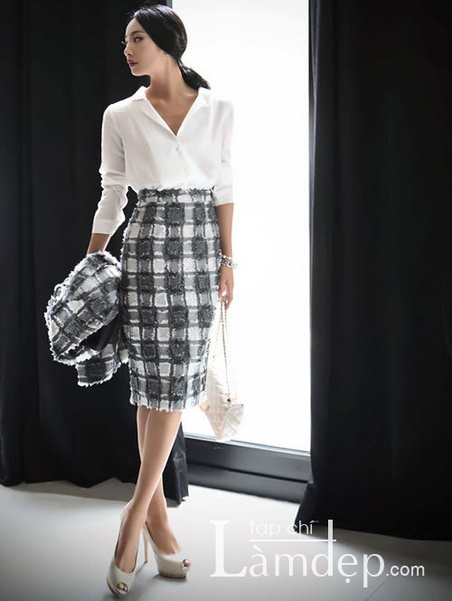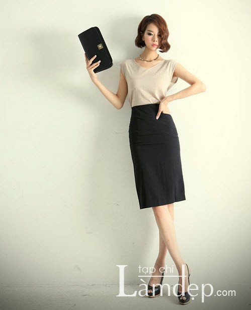 Những chiếc váy thắt eo mang vẻ đẹp quyến rũ cổ điển trong công sở không thể không kể đến chân váy bút chì lưng cao tôn dáng thanh mảnh của chị em.