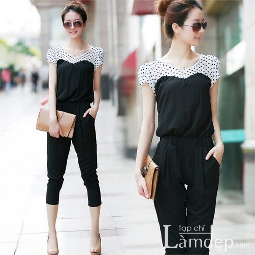Bạn gái có thân hình nhỏ nhắn cùng chiều cao khiêm tốn nên chọn loại jumpsuit có vòng eo cao để tăng độ dài cho đôi chân.