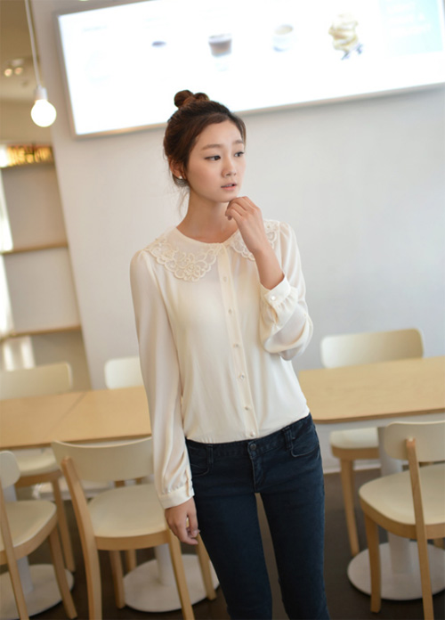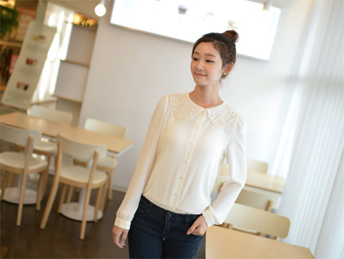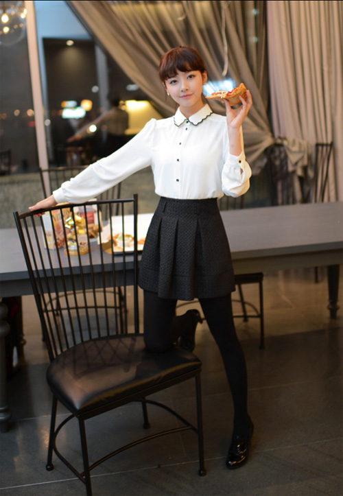 Áo sơ mi trắng luôn được lòng các cô nàng công sở. Với chiếc áo đơn màu này bạn có thể dễ dàng kết hợp cùng chân váy màu sắc, chân váy họa tiết tùy theo sở thích của mình.